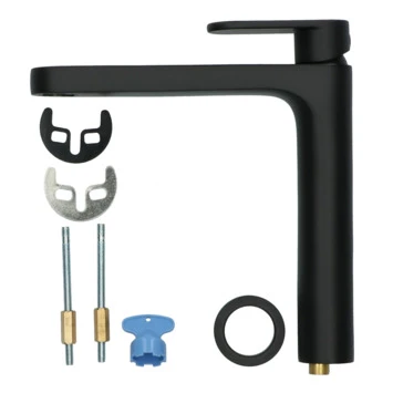 De Absolut wastafelkraan Iode medium met hendel en waste Zwart is een elegante aanvulling in je keuken met de L-vormige uitloop. De platte vorm en mat zwarte afwerking hebben een ingetogen uitstraling en passen altijd in jouw interieur, of die nu modern, landelijk of industrieel is. De wastafelkraan kun je ook in een hoger model verkrijgen. De hoogte van 30 cm zorgt ervoor dat je veel ruimte in je wastafel hebt. Handig als je je haar wil wassen! Met de eenhendelbediening meng je eenvoudig met 1 hand het water naar de gewenste temperatuur. De keramische schijven maken draaien soepel en nauwkeurig en vergen bovendien weinig onderhoud. Bij de kraanset krijg je ook een waste met afvoerplug; deze bedien je met een hendel aan de achterkant van de kraan. Zo hoef je nooit meer met je handen in te heet of vies water om de afvoer open te zetten. Met de meegeleverde flexibele aansluitslangen, bevestigingsmateriaal, waste met wasteinrichting, afvoerplug en montagehandleiding kun je de kraan heel eenvoudig zelf aansluiten. Op de kraan krijg je 5 jaar garantie.
