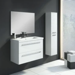 De Atlantic badmeubelset Stella met spiegel en zwarte wastafel 80cm Canela Eiken is een hangende set met een chique uitstraling. Dankzij het hangende design creëer je een ruimtelijke look in jouw badkamer. Het meubel is voorzien van 2 soft close laden en een mat zwarte keramische wastafel. Daarnaast is aan deze set een losse ronde spiegel toegevoegd. De set is voorzien van stijlvolle mat zwarte grepen, wat zorgt voor een chique en industrieel uiterlijk. De set wordt flatpacked geleverd en is eenvoudig te installeren met de meegeleverde bevestigingsmaterialen. Exclusief wastafelkraan.