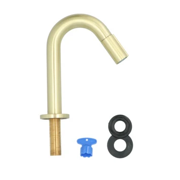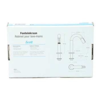 De Atlantic fonteinkraan Scott met draaiknop Messing bestaat uit een messing fonteinkraan van 17,8 cm hoog, bevestigingsmateriaal en montagehandleiding. De kraan heeft een diepte van slechts 11,2 cm en is daarmee uitermate geschikt voor gebruik in het toilet. De Scott fonteinkraan zet je open met de draaiknop op het uiteinde van de kraanuitloop. Aan de anti-kalk perlator hecht kalk zich moeilijk vast en veeg je er gemakkelijk met de hand af. De ronde c-vormige kraan heeft een geborstelde goudkleurige messing afwerking. Gebruik alleen water en een zachte doek om de kraan schoon te maken. Gebruik geen schurend, bijtend, azijnhoudend of agressief schoonmaakmiddel. Op de kraan heb je 5 jaar garantie.