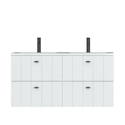 Tiger Maryport Badkamermeubelset 120 Cm Mat Wit Met Matzwarte Polybeton Wastafel En Matzwarte Grepen