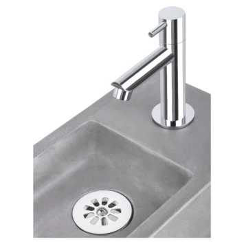 Breng je fonteinset in je toiletruimte in één stijl met de kranen van Differnz! Deze prachtig vormgegeven fonteinkraan monteer je eenvoudig. Vanwege zijn mooie strakke vormgeving en chromen afwerking, combineer je de Differnz fonteinkraan recht Chroom goed met een vrij hangende wastafel of fontein.