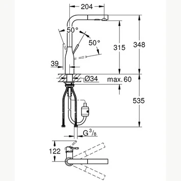 | Hoogte kraan | 34.8 cm |