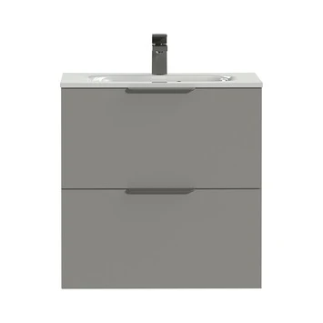 Dit badkamermeubel is onderdeel van de Tiger Studio serie. Dit is een serie met enorm veel varianten met een kleine aanpassing. Denk daarbij aan afmetingen, kleur, vorm, etc. Deze variant heeft een mat-grijze onderkast met 2 lades, met profielgrepen en een softclose ladesysteem. Dat wil zeggen dat de lades altijd zachtjes sluiten. Dit voorkomt schade aan het houtwerk wanneer je per ongeluk de lades te hard dicht doet. De lades bieden voldoende ruimte om handdoeken en andere sanitaire spullen in op te bergen. De onderkast, met een breedte van 60 cm, heeft een hoogglans witte wastafel van polybeton. Hoewel deze op de afbeelding misschien met kraan te zien is, wordt dit badmeubel exclusief kraan en sifon verkocht. Gelukkig heeft GAMMA ook een breed assortiment met kranen. Dankzij de duidelijke handleiding en meegeleverd bevestigingsmateriaal kun je eenvoudig zelf de montage uitvoeren. Tot slot zit er 3 jaar garantie op alle badmeubelen binnen de Tiger Studio serie. Mocht dit Tiger Badkamermeubel Studio 60 cm Mat Grijs met Polybeton Wastafel Hoogglans Wit en Profielgrepen het net niet helemaal zijn, kijk dan vooral nog even verder in de GAMMA webshop. Er is vast en zeker een passende maat en kleurencombinatie te vinden!