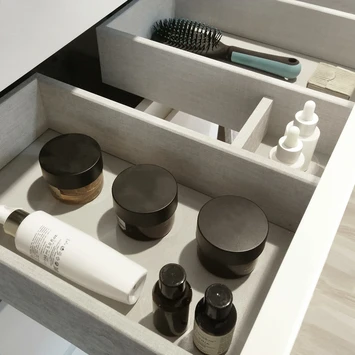 Strakke lijnen gecombineerd met natuurlijke materialen en een slim design voor een ruimtelijk gevoel. Dit vat de serie Tiger Pocket perfect samen. Het strakke ontwerp is simpel maar elegant en brengt meer comfort naar je badkamer. Deze kast heeft een diepte van slechts 39 cm. Ideaal voor de kleinere badkamer. De ruime lades zijn uitgerust met Hettich softclosegeleiders en de binnenzijde heeft een trendy afwerking in textiel. De matwitte grepen zijn perfect in het geheel verwerkt, net als de twee speelse sierpoten. De afwerking in naturel eik zorgt voor een stijlvolle Scandinavische look.