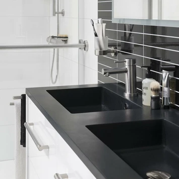 Landelijk design in een modern jasje. De Tiger Maryport wastafelonderkast van 120 cm in mat wit zorgt voor een luxe, sfeervolle look en houdt badkamer en geest opgeruimd. Deze volledig voorgemonteerde wastafelonderkast heeft 4 ruime lades met softclose geleiders om al je verzorgingsproducten overzichtelijk in op te bergen. De half voorgeboorde gaten voor de matzwarte grepen zorgen voor een eenvoudige montage. De look wordt compleet dankzij de matzwarte polybeton wastafel met natuursteen uitstraling.